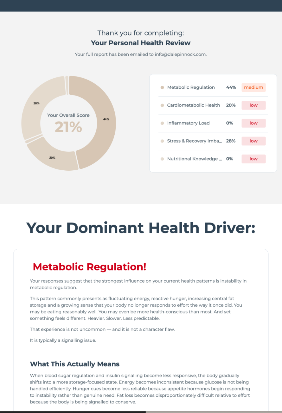 At the end, you’ll receive a clear summary of what may be affecting you right now — and the most sensible place to begin to improve things.