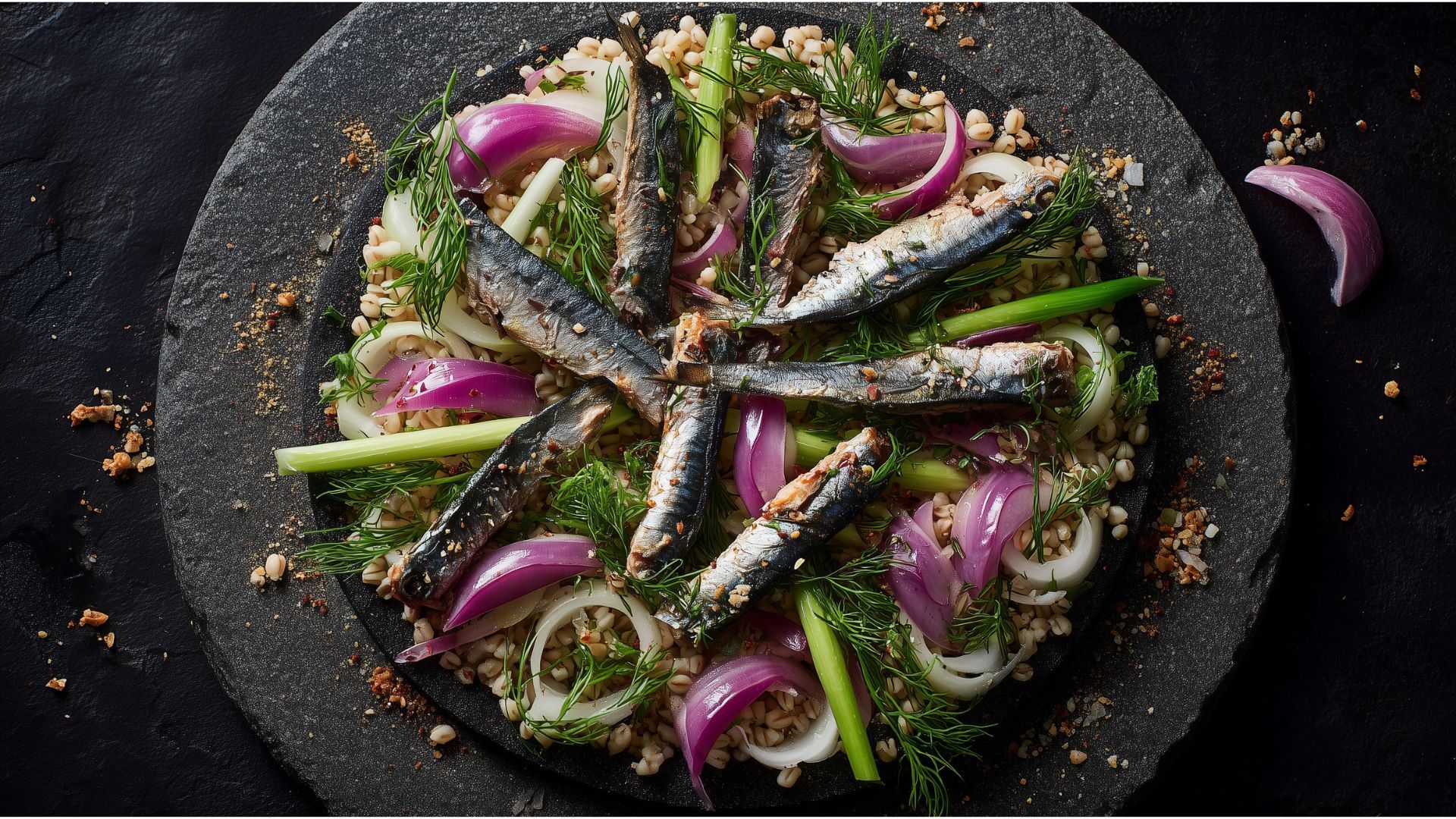 Sardines with Warm Barley, Fennel & Red Onion Salad